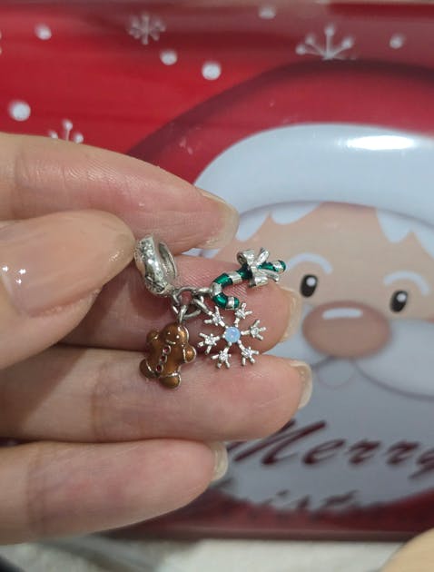 Federica Il set di ciondoli natalizi aveva tutto ci che desideravo: omino di pan di zenzero, fiocco di neve e bastoncino di zucchero. Perfetto!